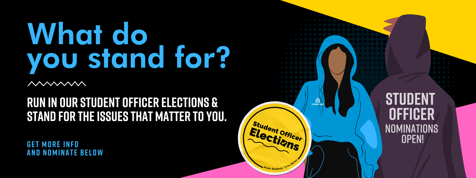 These Officers are elected by students in March each year, and the nominations for those positions are open NOW!