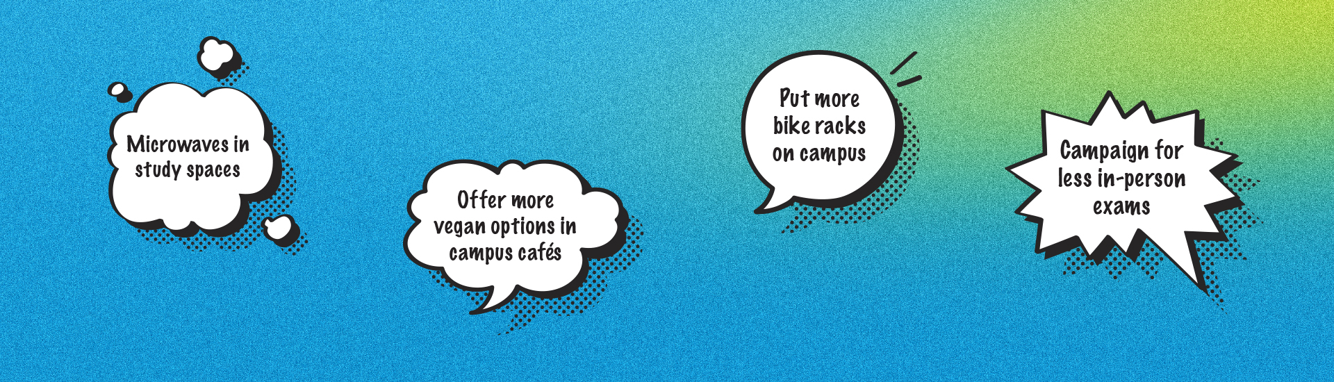 Submit your idea on our ideas module below and let your fellow students decide which are taken forward.